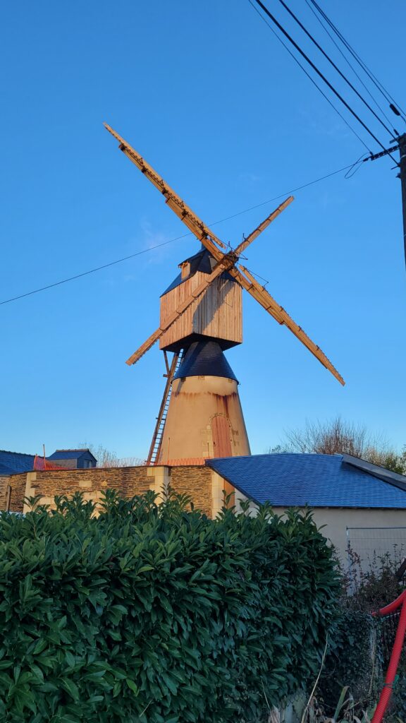 Mais chaque moulin possédait plusieurs dénominations : Celui-là s’appelle encore “moulin du Pavé” (car sis au lieu-dit “le Pavé”), mais également “moulin de la Haute Bâte”, couplé, comme souvent, à un moulin à eau. En l’occurrence le moulin de la Basse Bâte sur la rivière Aubance était en co-visibilité avec le moulin de la Haute Bâte, ayant un même meunier pouvant ainsi produire quelles que soient les conditions météorologiques. Enfin ce moulin est aussi dénommé “moulin de Terre-Forte” car étant sur une terre argileuse (contrairement à 4 des 12 moulins ayant, entre autres, le nom de moulin de Terre-Pourrie).