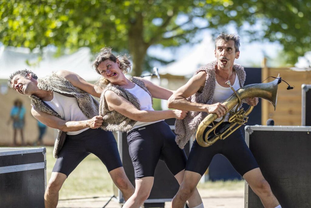 À travers une épopée burlesque, les trois artistes de la Cie Ernesto Barytoni vous embarquent dans un voyage musical rocambolesque, de l’âge de pierre à l’âge 2.O !